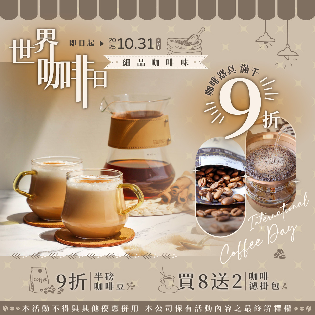 如果你不方便出遠門,各家咖啡品牌也會在世界咖啡日前後推出優惠活動,讓更多人能用輕鬆的方式參與和享受優惠。