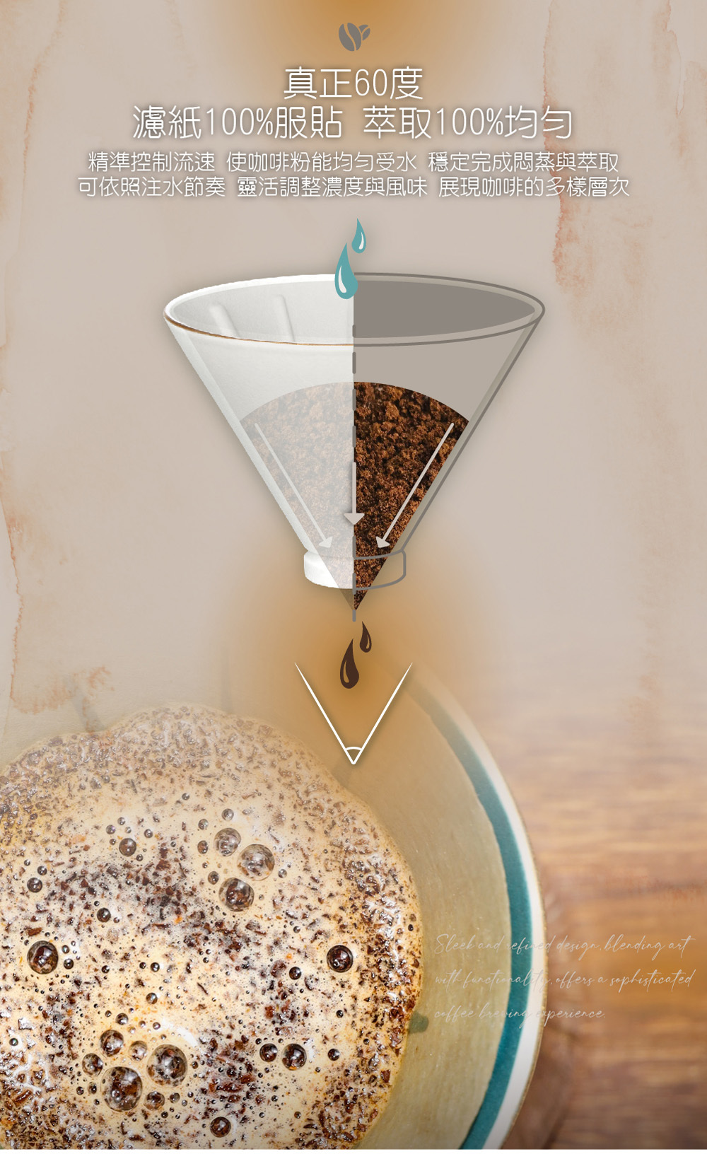 .精準萃取:60 度錐形搭配 12 條粗細交錯水道,穩定導流