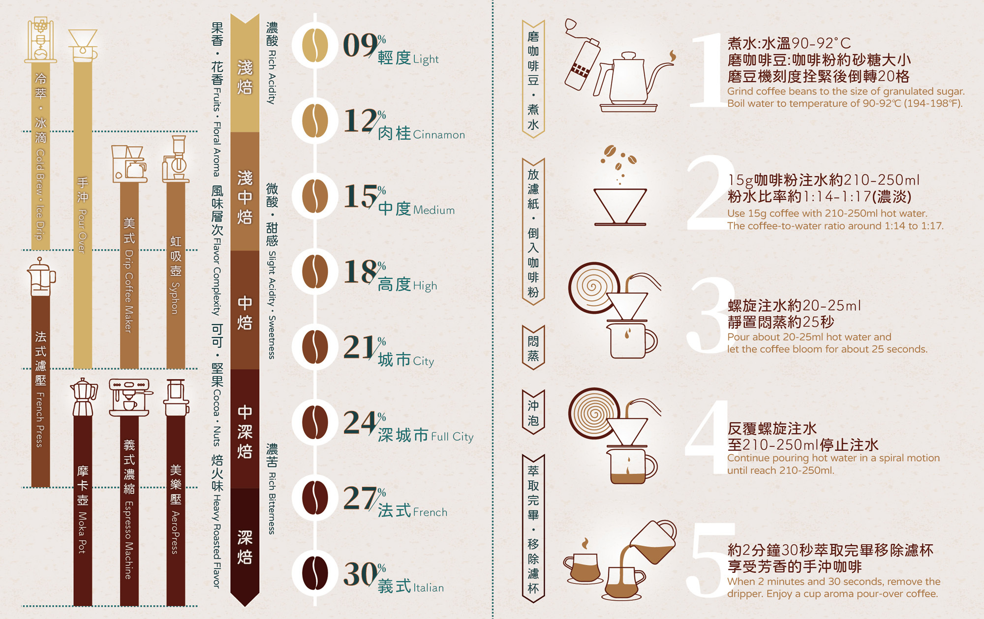 從咖啡豆、手沖技法及最後如何品嚐,讓您輕鬆成為手沖咖啡達人。