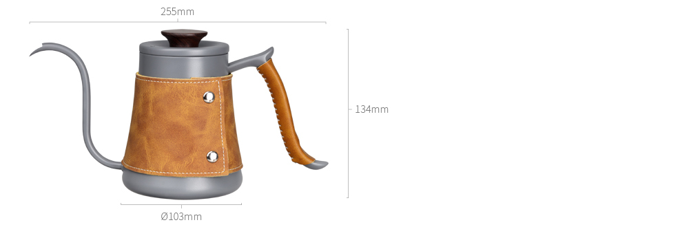 .S型皮革手柄,觸感舒適防燙,穩定控水