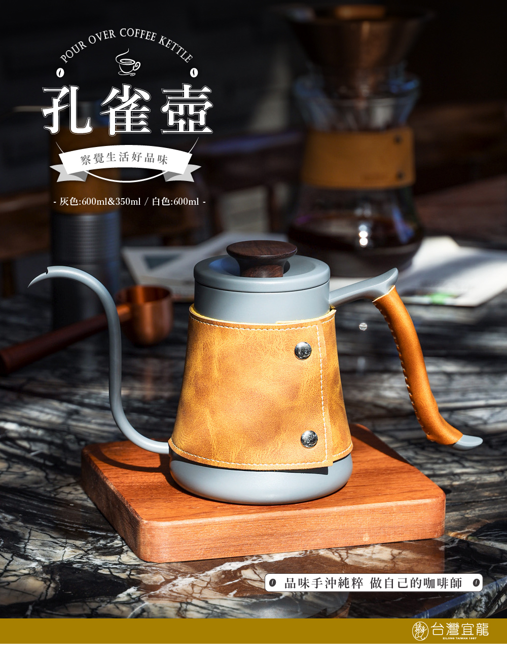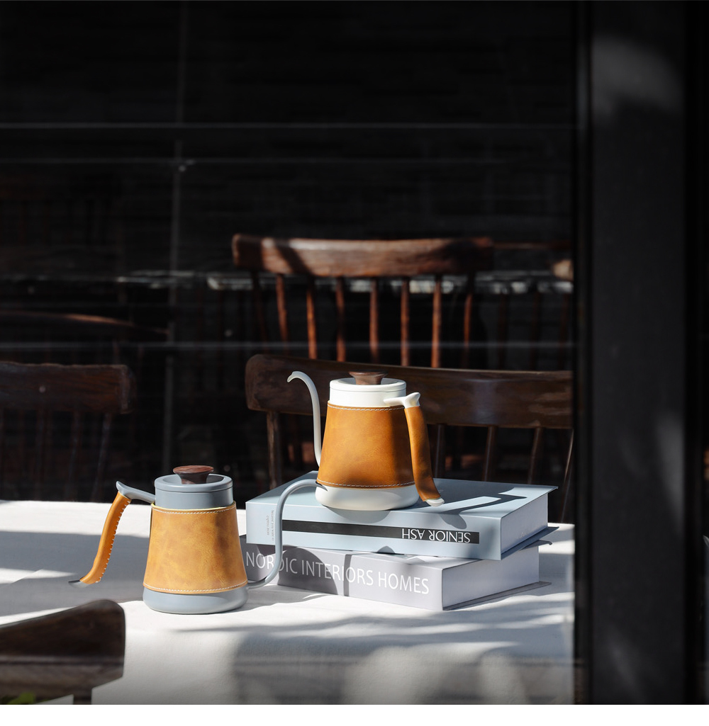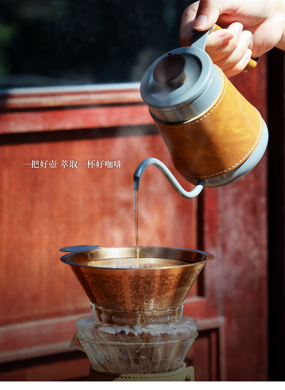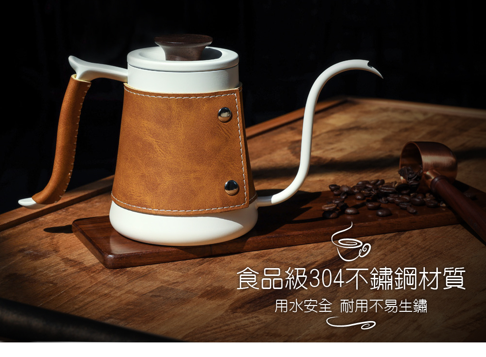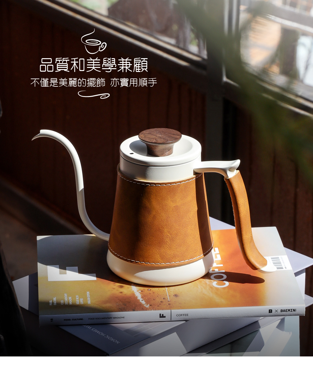 .S型皮革手柄,觸感舒適防燙,穩定控水