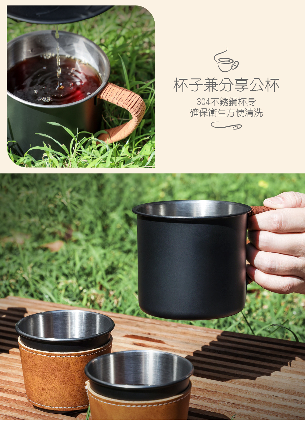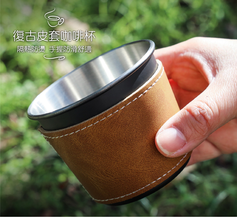 .復古皮套咖啡杯- 隔熱防燙防滑