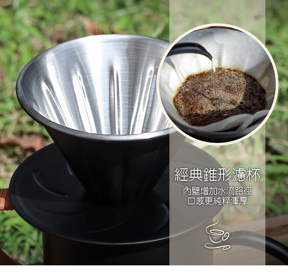 .經典錐形濾杯- 內壁增加水流路徑,口感更純粹渾厚