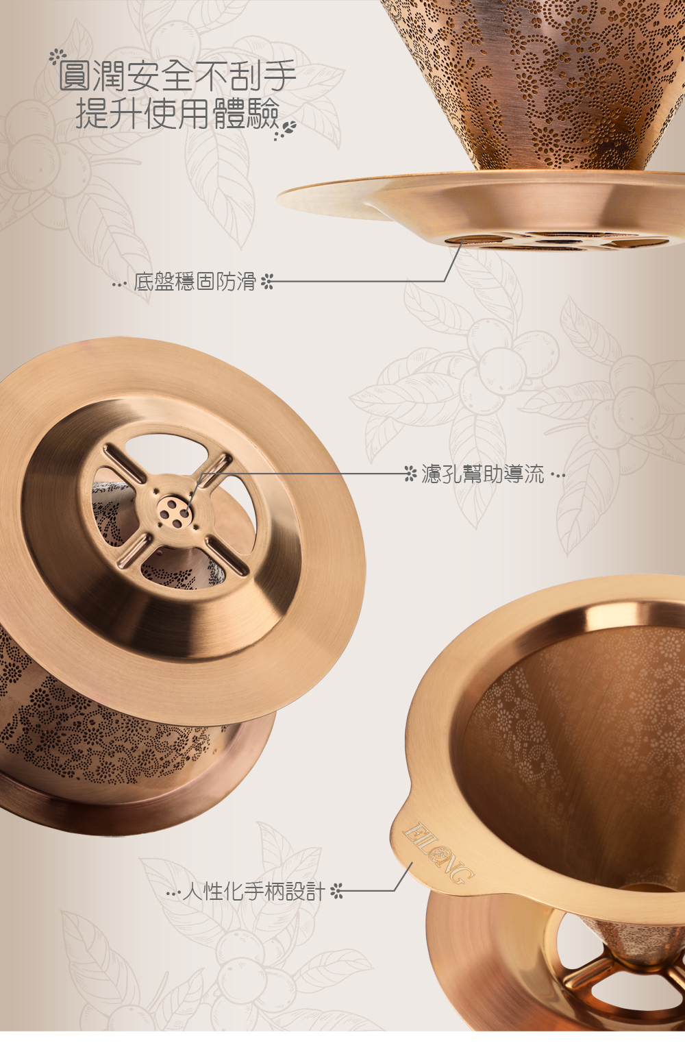 .霧面髮絲紋雕花濾孔,質感考究