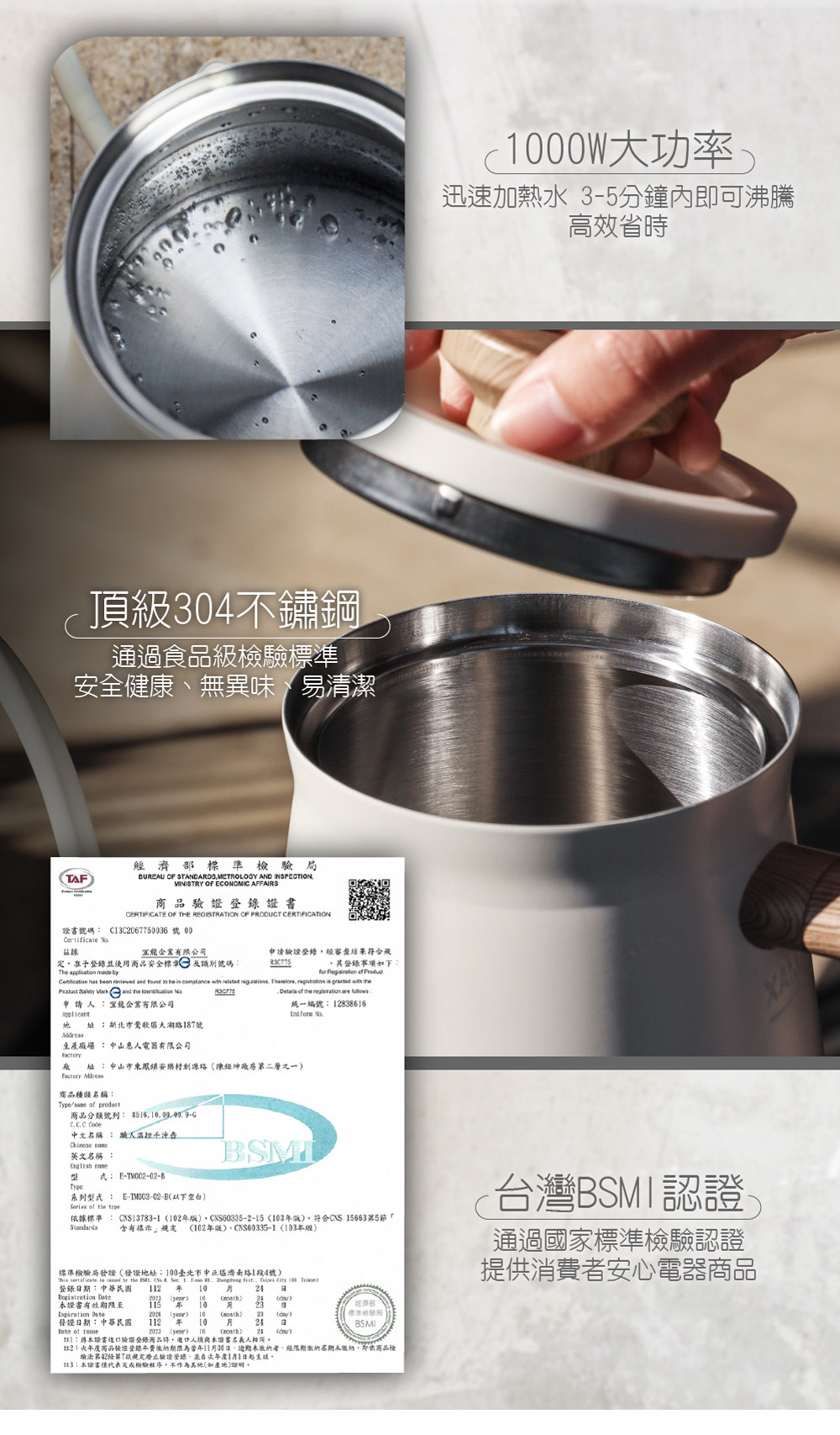 .迅速加熱水,3-5分鐘內即可沸騰,高效省時