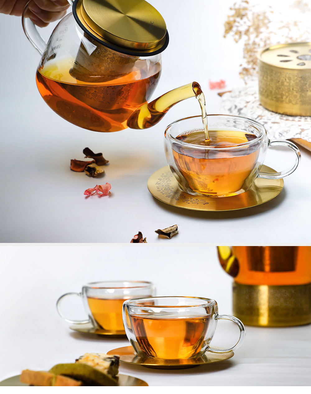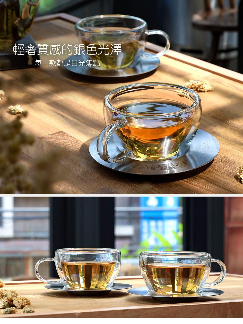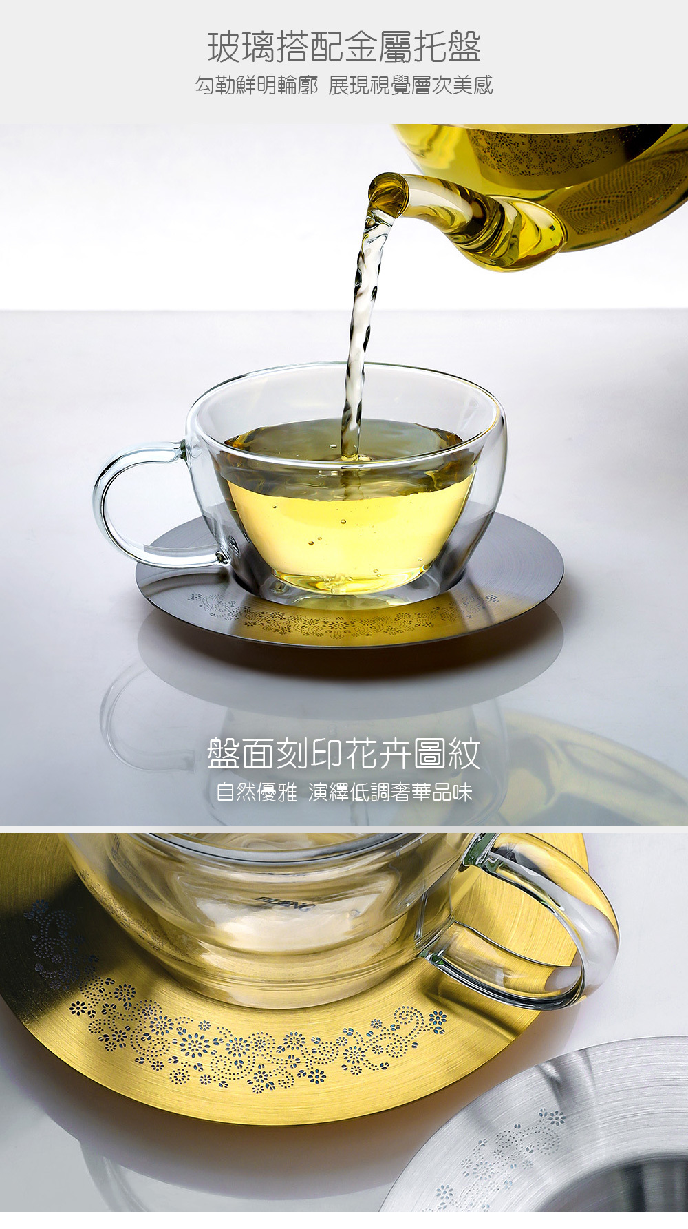 .玻璃搭配金屬托盤,展現視覺層次美感
