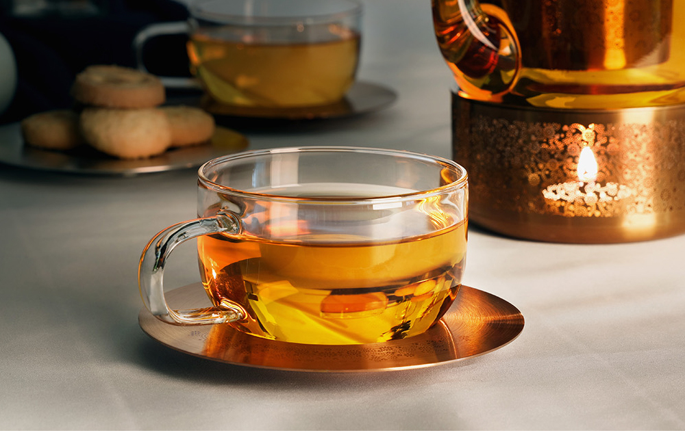 .玻璃搭配金屬托盤,展現視覺層次美感