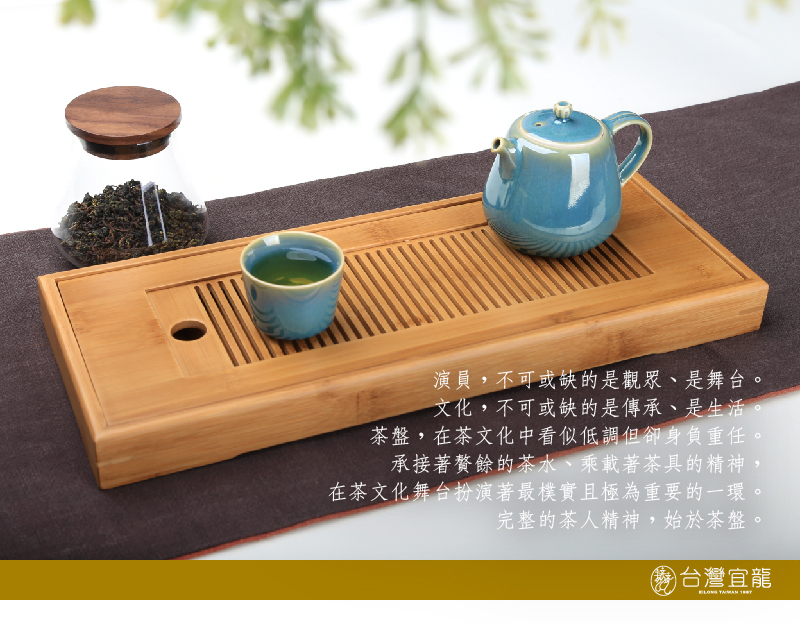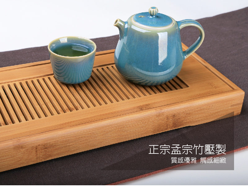 竹製長形茶盤,簡約自然質感。泡茶擺設兼備,實用優雅兼具。為茶席增添淡雅韻味。