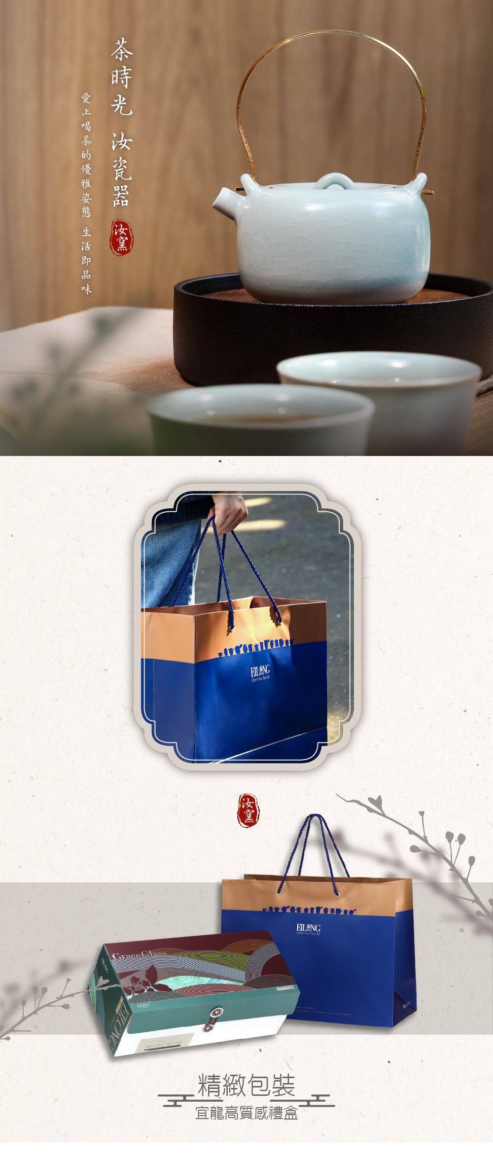 源自南宋汝瓷燒製工藝,不凡之處在其釉色。釉色以天青為主,有「雨過天青雲破處,這般顏色作將來」的美譽。在品茗的歲月,可以享受汝窯開片之美。
