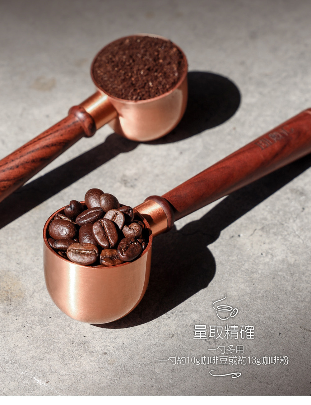 .量取精確- 一勺多用,約10g咖啡豆或約13g咖啡粉