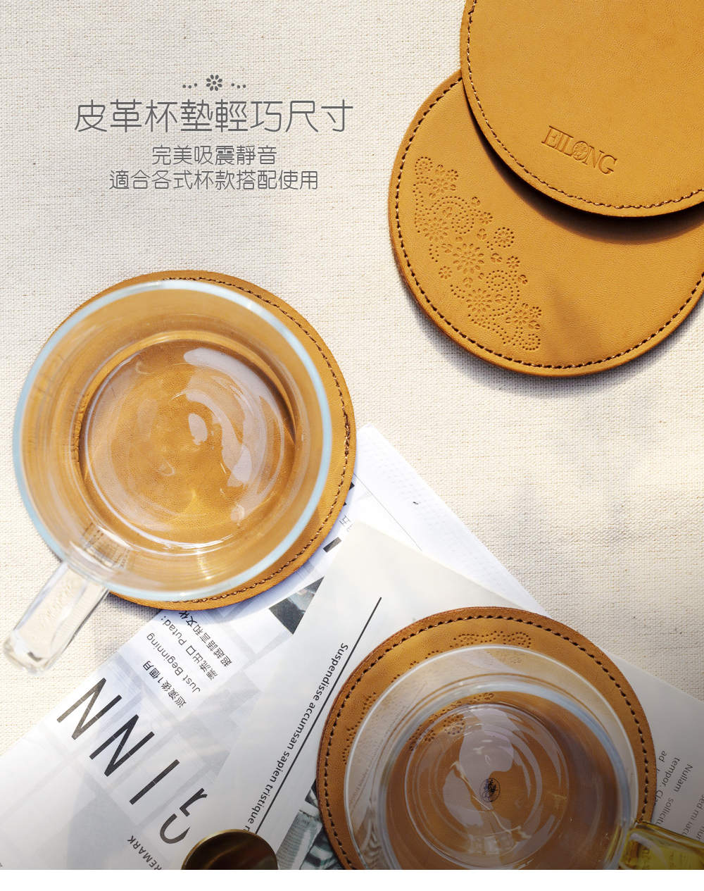 .皮革杯墊輕巧尺寸-完美吸震靜音