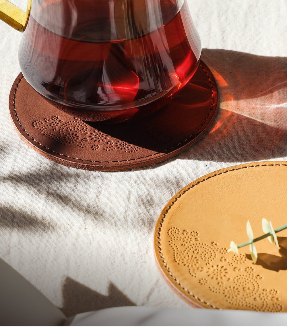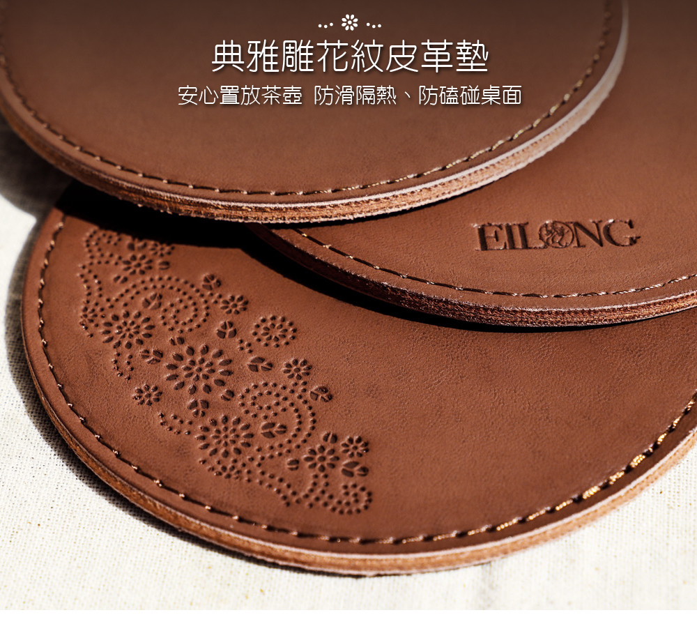 .典雅雕花紋皮革墊-置放茶壺防滑隔熱