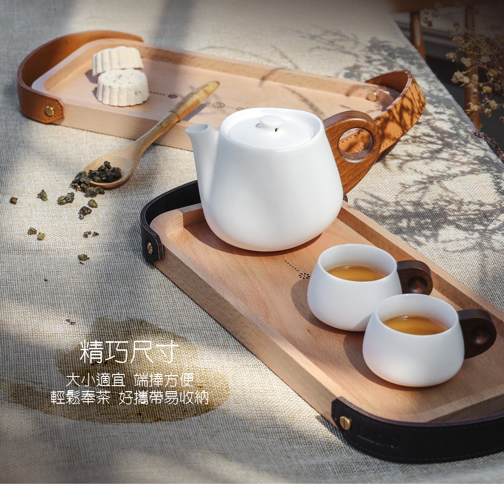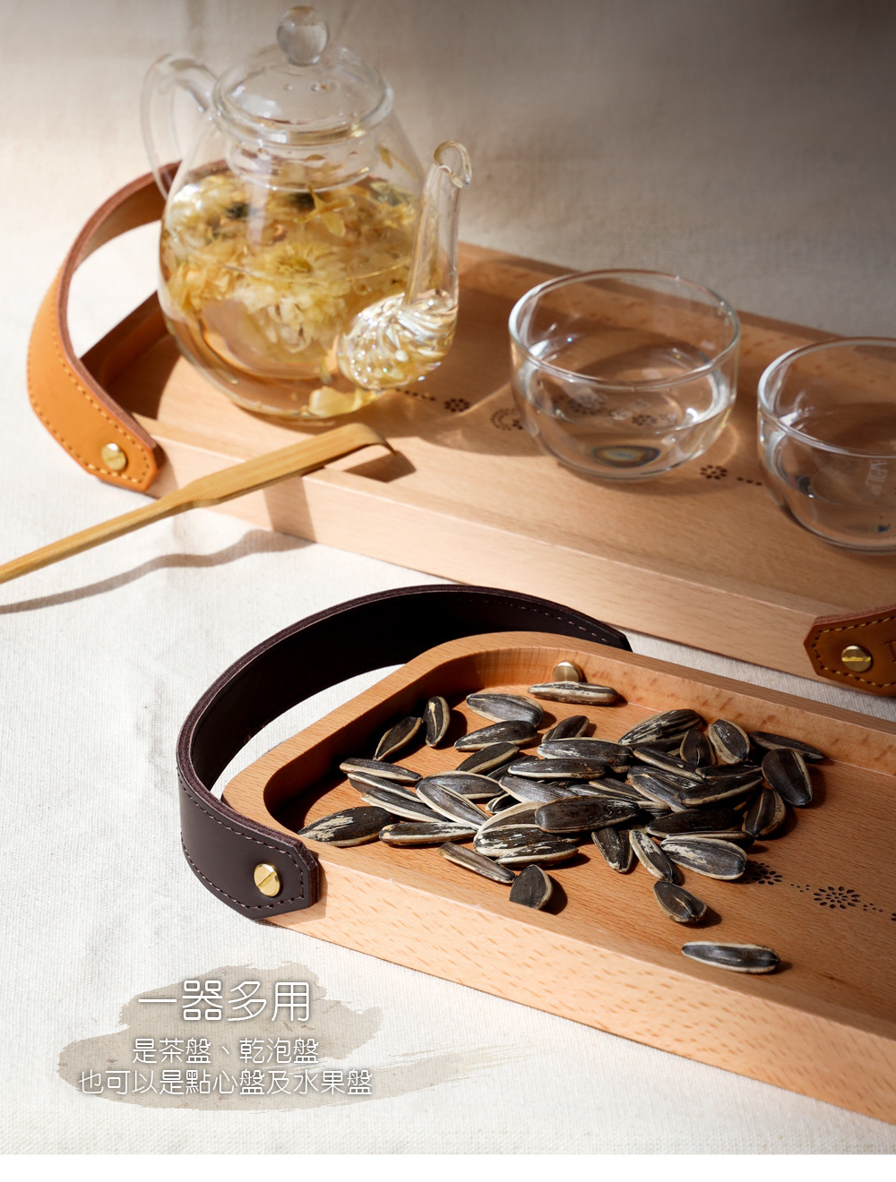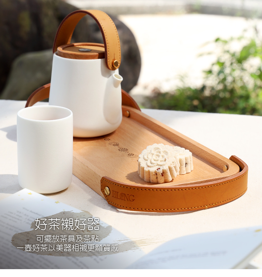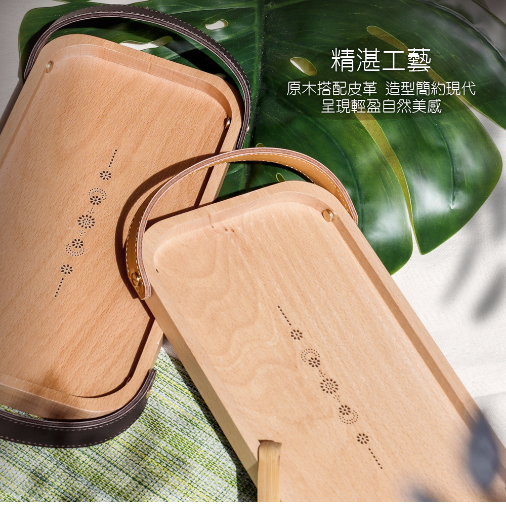 溫潤原木結合皮革工藝的典藏設計,讓您擁有質樸溫暖的茶道氛圍。好茶襯好器-可擺放茶具及茶點,一壺好茶以美器相襯更顯質感。