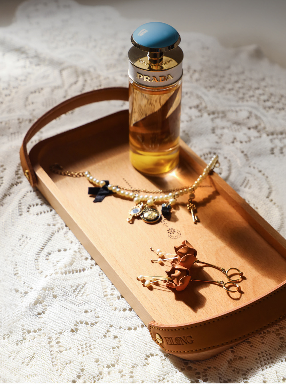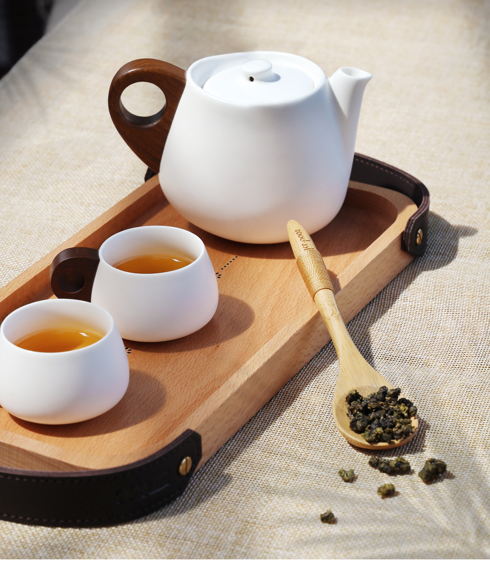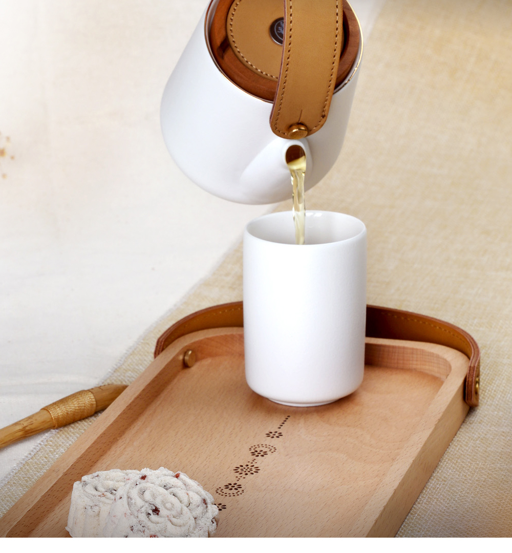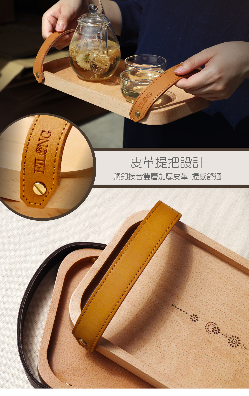 溫潤原木結合皮革工藝的典藏設計,讓您擁有質樸溫暖的茶道氛圍。好茶襯好器-可擺放茶具及茶點,一壺好茶以美器相襯更顯質感。