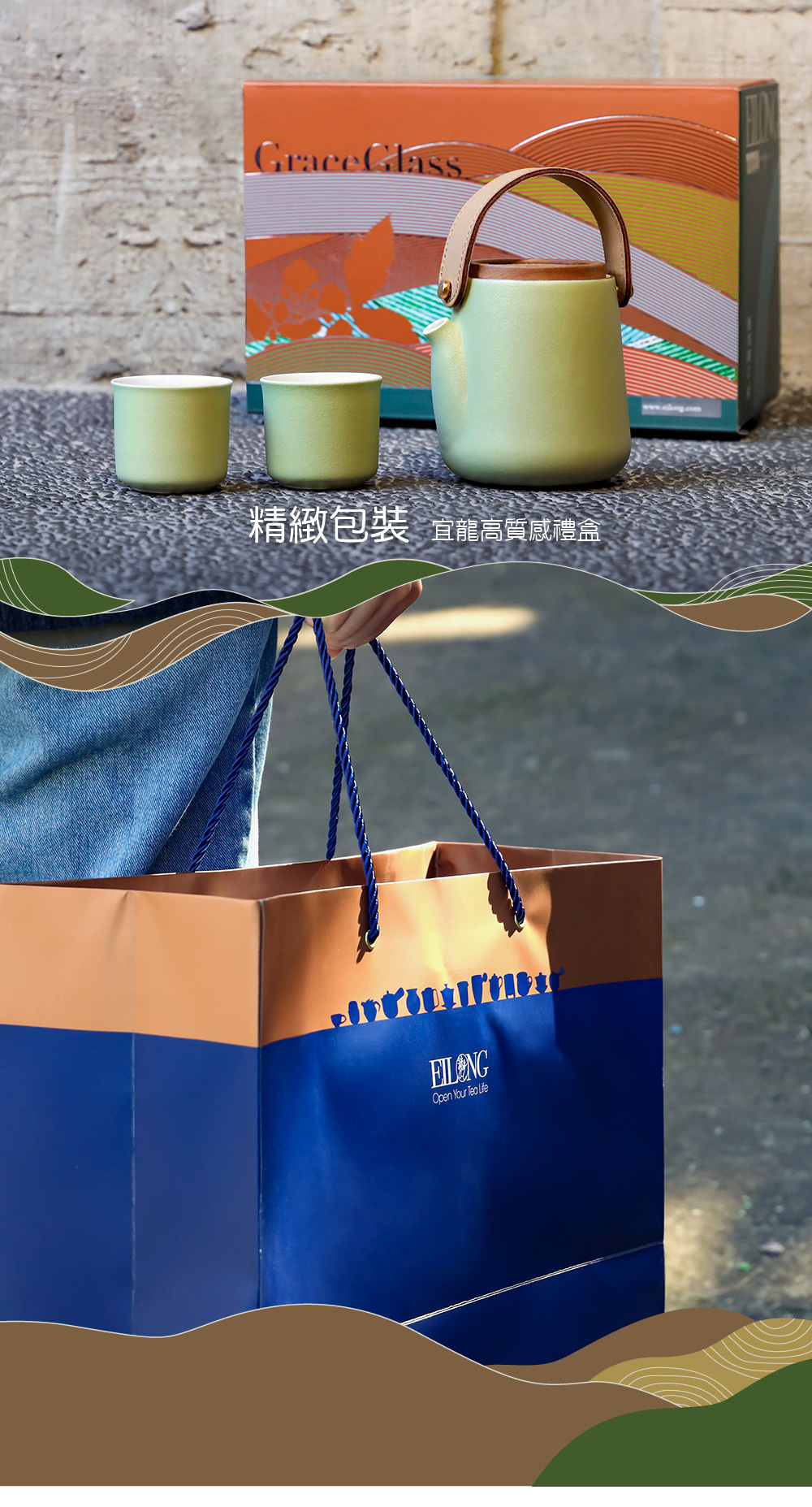 溫潤的陶瓷巧妙加裝皮革提把,增添優雅時尚感,皮革隨時間呈漸變色澤與風貌。