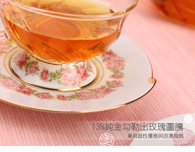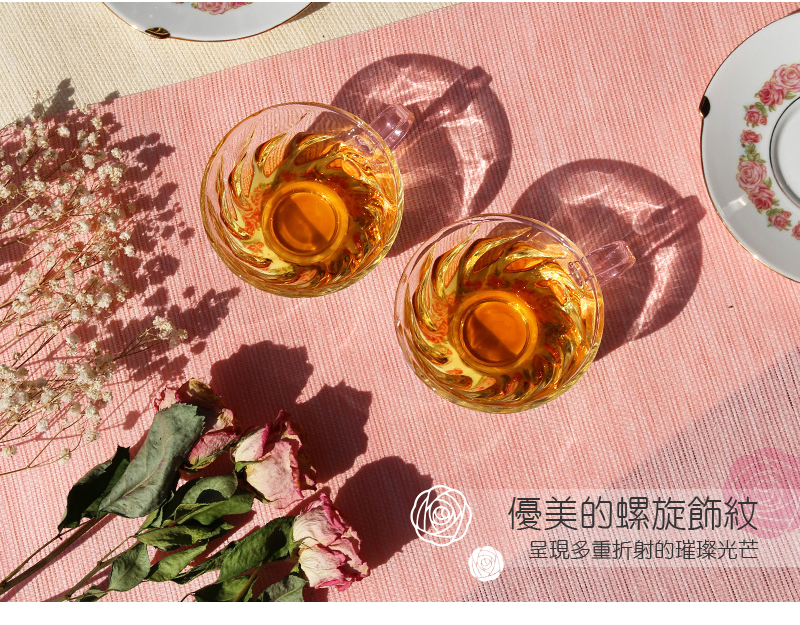 優美的螺旋飾紋,呈現折射的璀璨光芒。13%純金勾勒出玫瑰圖騰,展現優雅與浪漫風情。玫瑰粉嫩色系-營造女性溫柔、甜美的特質。