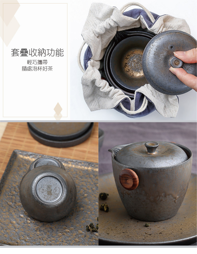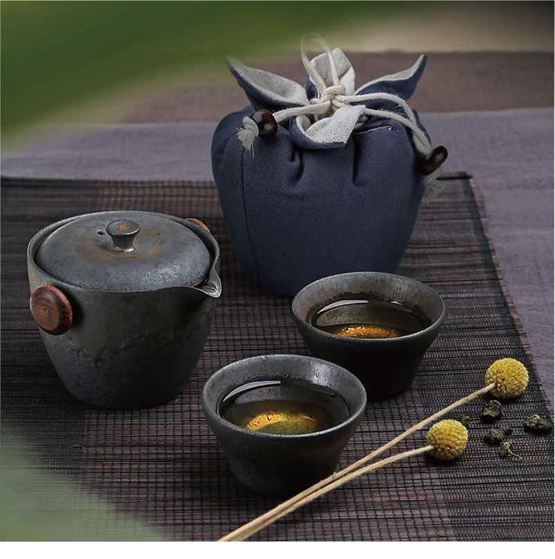 茶具旅行組,包含茶壺、茶杯等,輕便攜帶,隨時隨地品味清新茶韻,在旅途中享受茶道雅致時光。