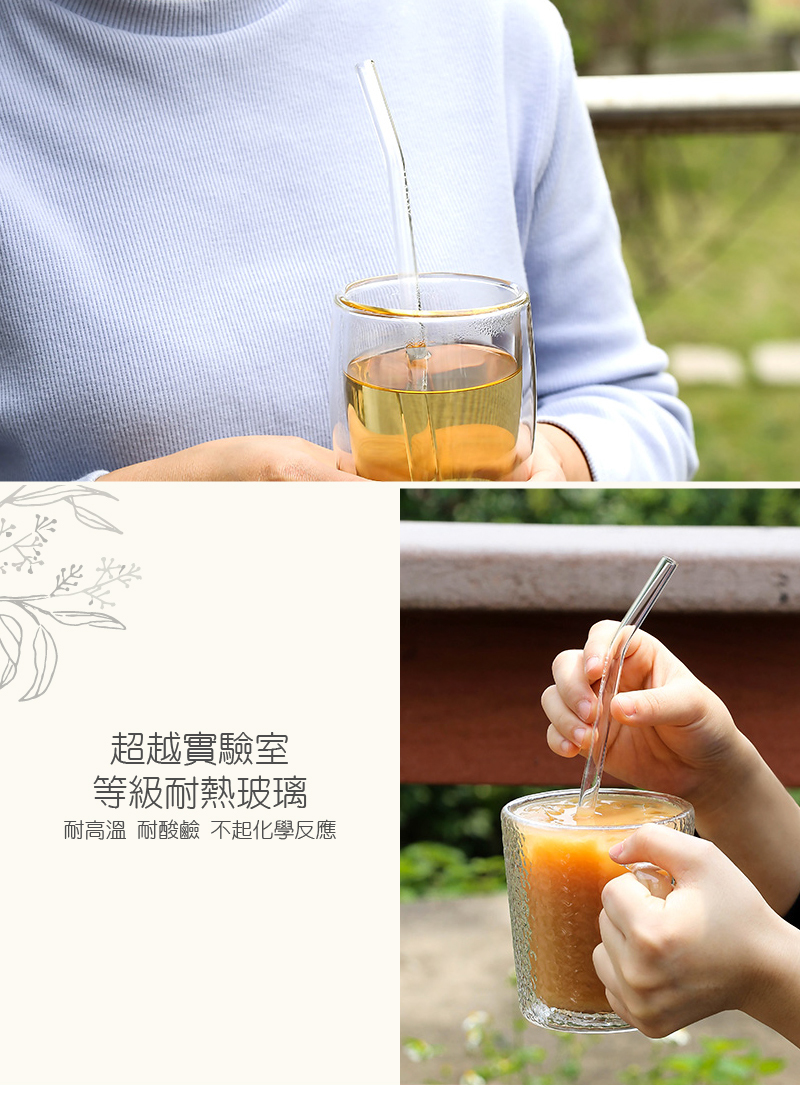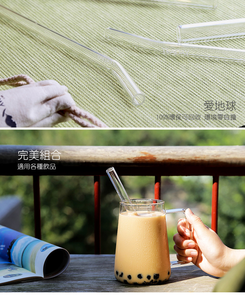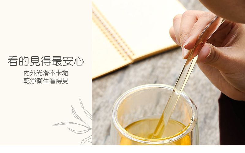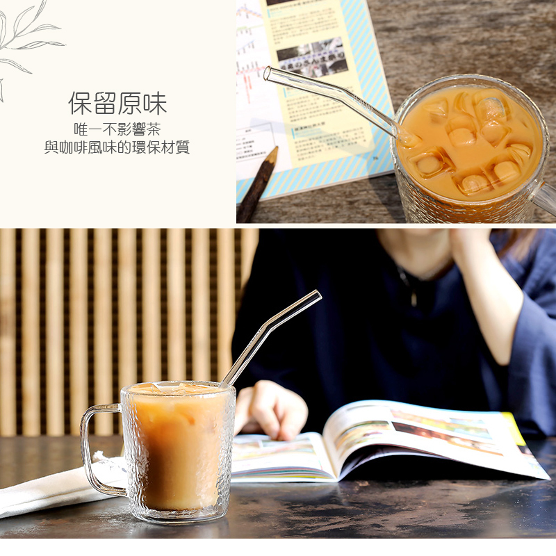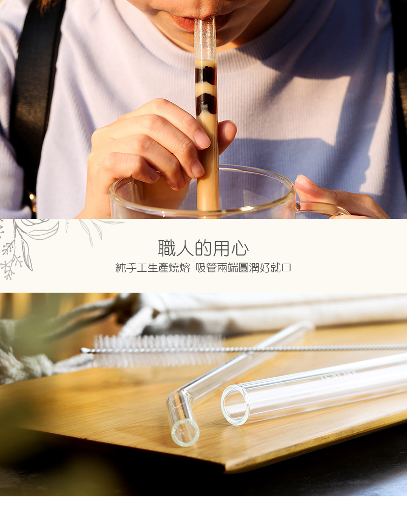 安心無毒-高質感的耐熱玻璃、耐高溫、耐酸鹼、不影響飲品風味,最適合作為入口的材質。專用清潔刷-吸管髒污時能用毛刷及時清潔,透明材質更安心束口袋-輕鬆攜帶,走到哪喝到哪,保持吸管清潔,飲用時更安心!