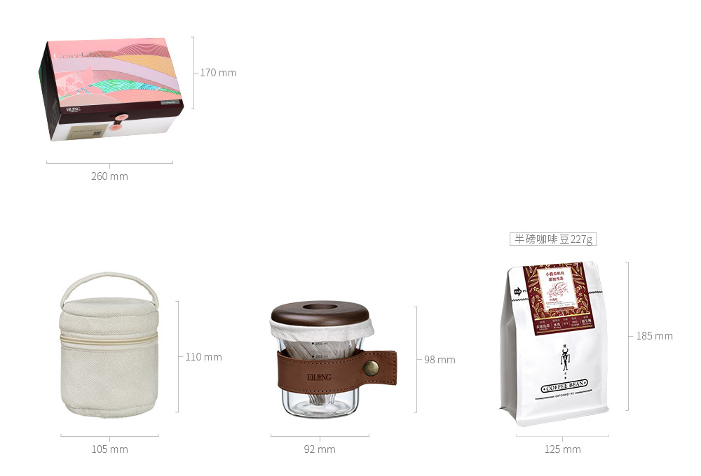 • 規格說明:耐熱玻璃、橄欖木、皮革杯套、麻布包、單品咖啡