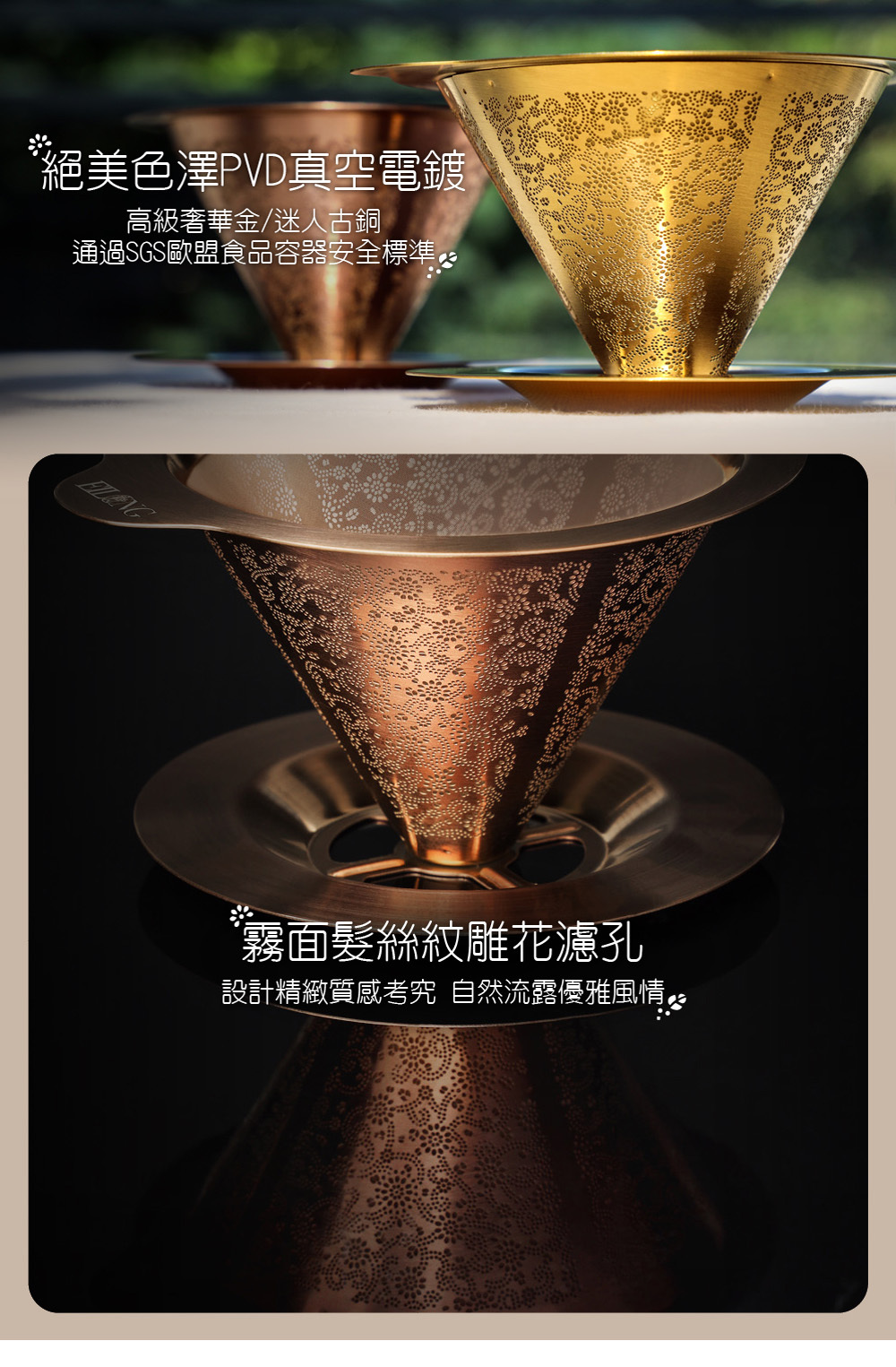 .霧面髮絲紋雕花濾孔,質感考究