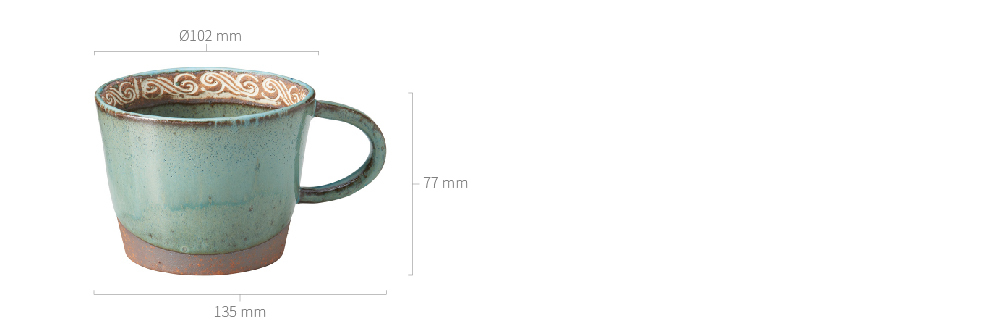 寬闊且圓潤的杯身,搭配沉穩的粗礫陶土底座,展現出半釉半土的對比美學。大口徑與好握的把手設計,讓這款馬克杯成為居家或辦公室裡最具儀式感的陪伴,在平凡的飲水時刻注入一份美好的祝福。