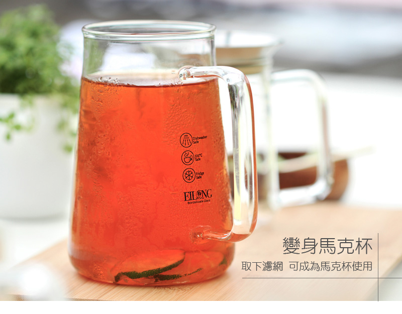 • 規格說明:耐熱玻璃、316不鏽鋼濾網、食品級矽膠