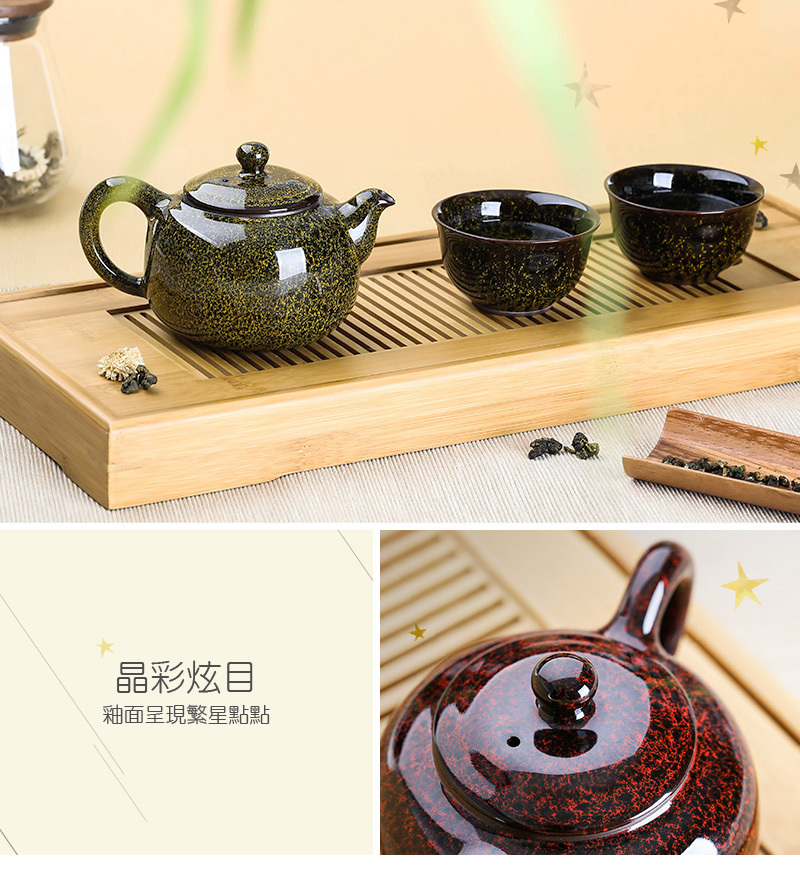 繁星天目茶壺,由陶藝職人精心製作的中式茶壺。已含鐵量高的紫砂為材,結合1300度窯燒窯變技藝,讓壺面呈現絢麗耀眼的星空紋理,為品茶時光更添藝術氛圍!