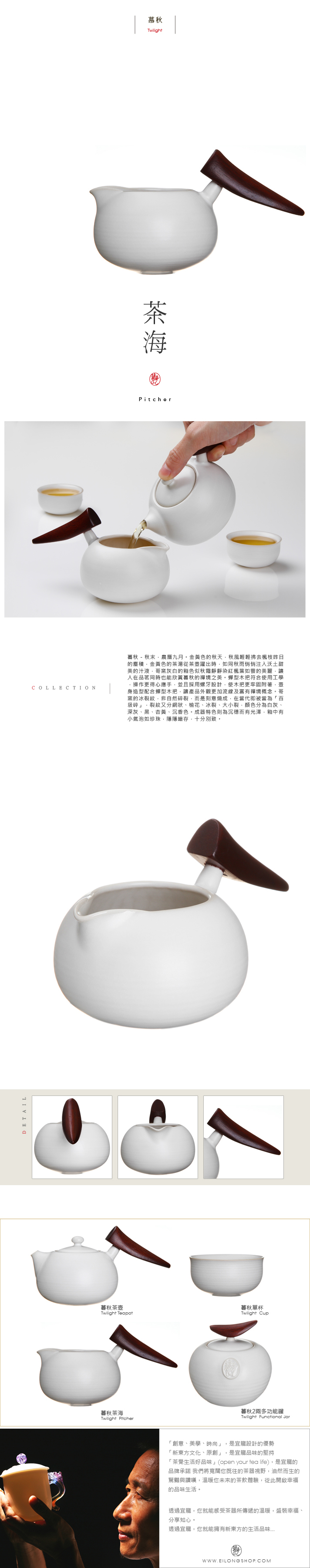 產品外觀流線有境概念,窯的冰裂非自然碎,而是刻意為之,分有網狀、櫻花、冰裂等多種樣式,色系有白灰、深灰、黑、黃等。